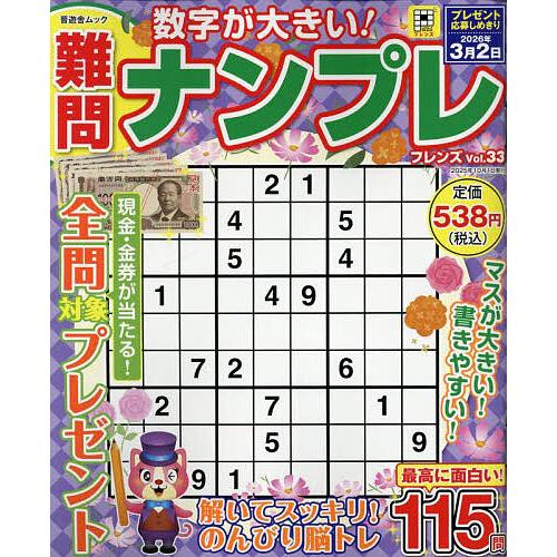 キーワード:難問ナンプレフレンズVol.33 なんもんなんぷれふれんず33 ナンモンナンプレフレンズ33